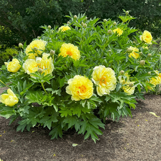 Intersectional peonies are a new class of Paeonia created by crossing herbaceous garden types with woody tree types. ‘Bartzella’ has large lemon-yellow blossoms and a soft lemon scent. Herbaceous, but substantial enough to be grown as a small shrub.